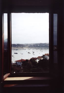 der blick aus dem hotelzimmer des parador in hondarribia - ohne fensterrahmen. der blick aus dem hotelzimmer des parador in hondarribia - mit fensterrahmen. jeff koons' puppy @ guggenheim bilbao. frank o. gehry's guggenheim bilbao. louise bourgeois' spinne symbolisiert die mutter.