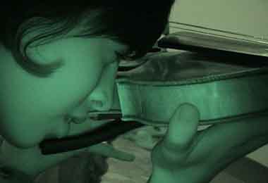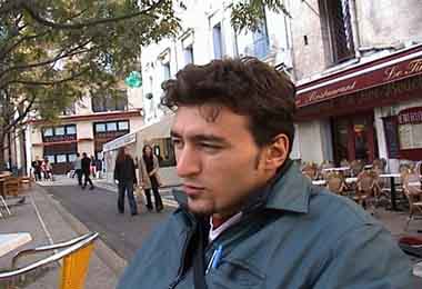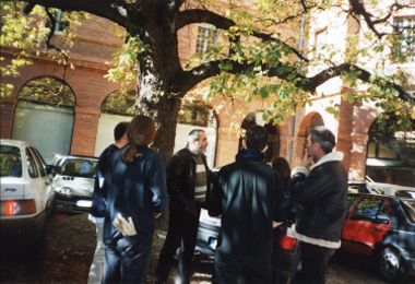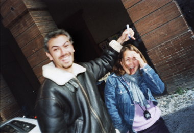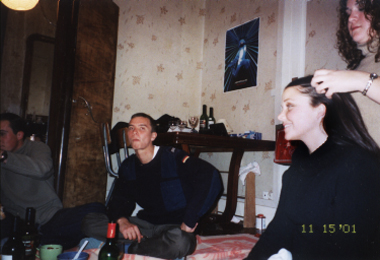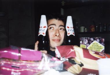 jean-charles; gastgeber der party in montpellier 10.11.2001 leily beim inspizieren der geige; party montpellier 10.11.2001 die witzigkeit kennt keine grenzen: party in montpellier 10.11.2001 montpellier 10.11.2001 tagsüber in montpellier im café 10.11.2001