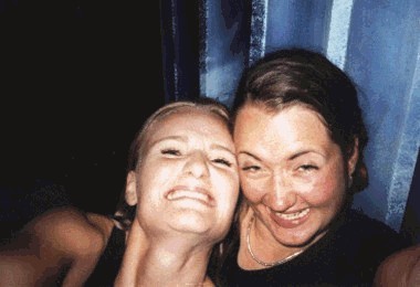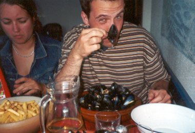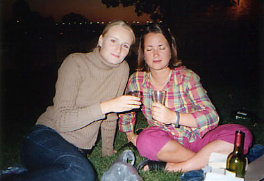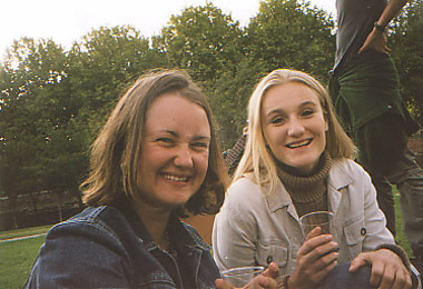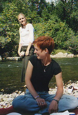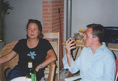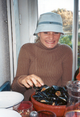 Christina+Henriette nach dem Genuß franz. Weines Reitausflug der Alliance am 11.9.2001 ...wirklich ausgezeichnet! Ja, Muscheln schmecken... Ausflug ans Mittelmeer 8.9.2001