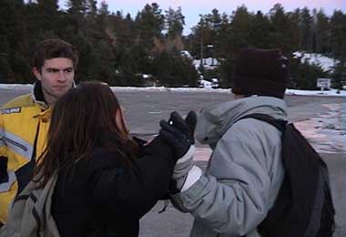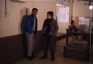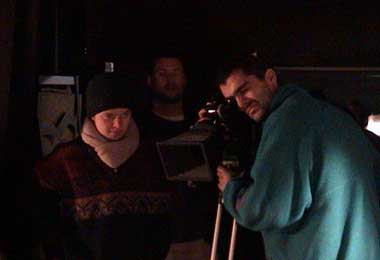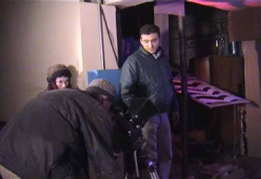 meine erste aufnahme mit einer 16mm kamera. tournage 19.12.01 noch ein kurzer check ob alles stimmt.... tournage 19.12.01 dann kans losgehen. tournage 19.12.01 martins pausbacken sind immer einen griff wert.... tournage 19.12.01 und zum zehnten mal den gleichen weg auf und ablaufen....  tournage 19.12.01