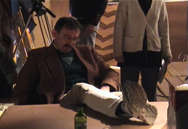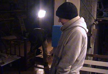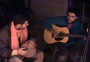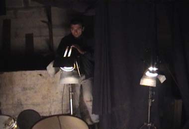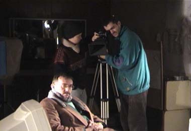 tournage 20.12.01 so kann man nach etlichen stunden arbeit in einer kalten garage aussehen... tournage 20.12.01 als es dann endlich vorbei war, zückten kamel und jean-francois die musikinstrumente um für den abspann einzuheizen. tournage 20.12.01 und? wer isses? tournage 20.12.01 didier (im vordergrund unser