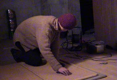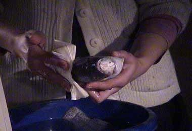 diese ecke hat uns mindestens 5 stunden diskussion, viermal schlechte laune, ratlosigkeit und dickköpfigkeit beschert. es lebe die diktatur in solchen momenten! tournage 19.12.01 martin beim inspizieren der kamera. diesmal ohne verdreckte bauhandschuhe.... tournage 19.12.01 ein produktives kamerteam: michi et jean-francois. tournage 19.12.01 die tapfere camille war die einzige die sich unseren toten fischen genähert hat. hier werden sie liebevoll in lauwarmen wasser gewaschen. tournage 19.12.01 tournage 19.12.01