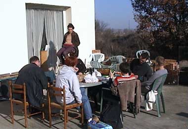 corrrrnel, der rumänische cineast war unser tutor. wenn er da war, war er immer zu einem dreckigen witz bereit... tournage 19.12.01 ratet mal wie oft man hiMself in dieser position vorfand... tournage 19.12.01 camille beim rangieren. tournage 19.12.01 eleonore sieht auch nicht mehr ganz fit aus. lag das am diskutieren? tournage 19.12.01 seht ihr, da sitzt er wieder.... na gut, gearbeitet hat martin auch; sogar abgespült! tournage 19.12.01