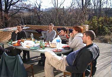 michbeck. construction 10.12.01 ich weiss: martin du hast mir die rechte an deinem bild in diesem moment ausdrücklich untersagt.... warum eigentlich? construction 10.12.01 finkbräu; prost! construction 10.12.01 eleonore auf der leiter überprüft ob auch jeder brav seinen teller leer gegessen hat. construction 10.12.01 mittagspause mit leckerem taboulet, sonnenschein, käse und finkbräu. construction 10.12.01