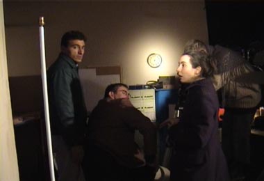 didier, alias marty in seiner lieblingsposition. tournage 20.12.01 hilfe! der tonangler spielt verrückt! tournage 20.12.01 in dieser constellation waren wir effizient. tournage 20.12.01 lichtsetzen. keine leichte aufgabe, vor allem weil man soviele technische parameter zu beachten hat. tournage 20.12.01 magali, auch bekannt als maladie. tournage 20.12.01